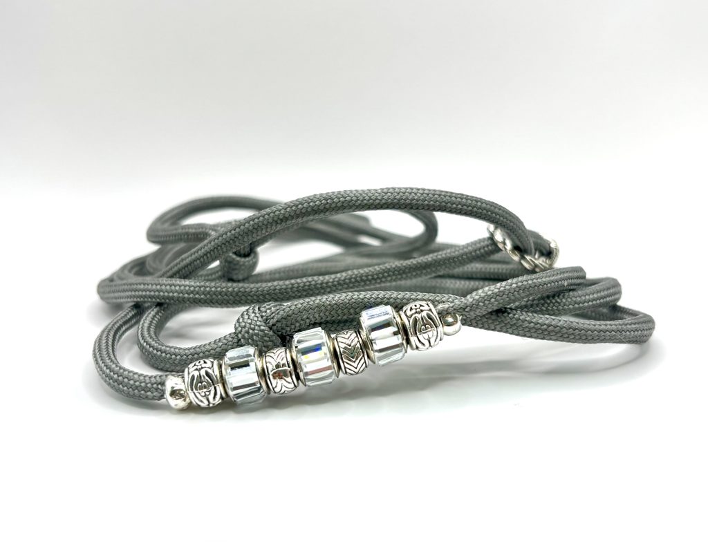 Pilkas dekoruotas parodinis pavadėlis su fiksatoriumi